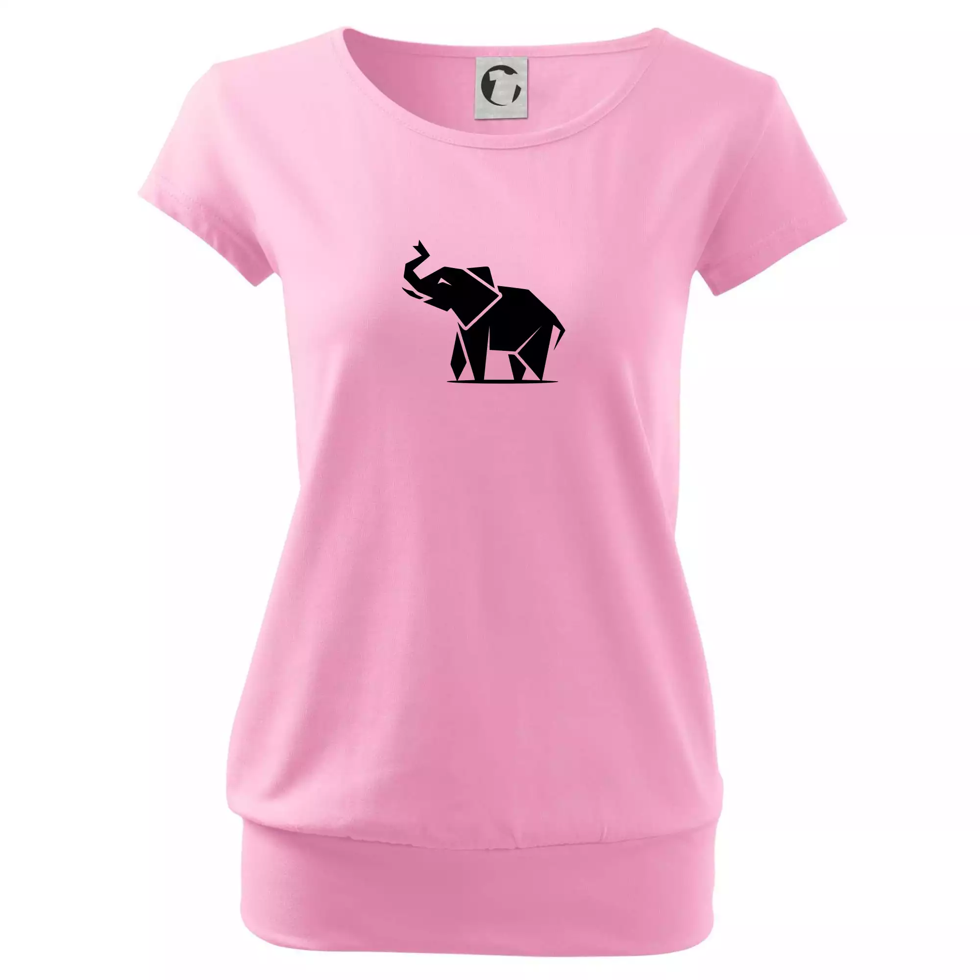 Trendové dámske tričko s veľmi krátkym rukávom, voľnejšieho strihu, v dolnom kraji všité do širokého lemu. Okrúhly priekrčník s úzkym lemom zo zhodného materiálu.