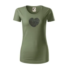 Dámske tričko s ľahko priliehavým strihom, ktorý pôsobí elegantne a skvele padne. Tento typ trička má kratšie rukávy a hlbší výstrih zakončený jemným lemovaním.