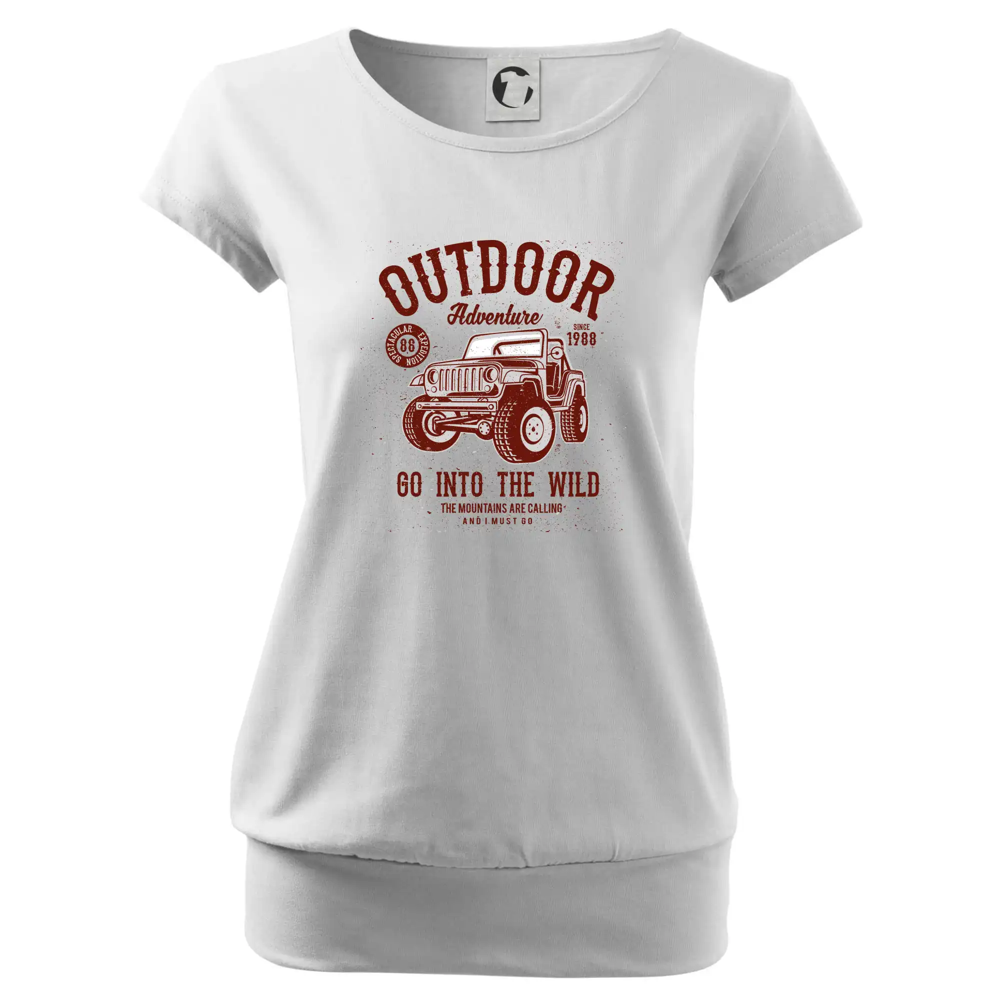 Trendové dámske tričko s veľmi krátkym rukávom, voľnejšieho strihu, v dolnom kraji všité do širokého lemu. Okrúhly priekrčník s úzkym lemom zo zhodného materiálu.