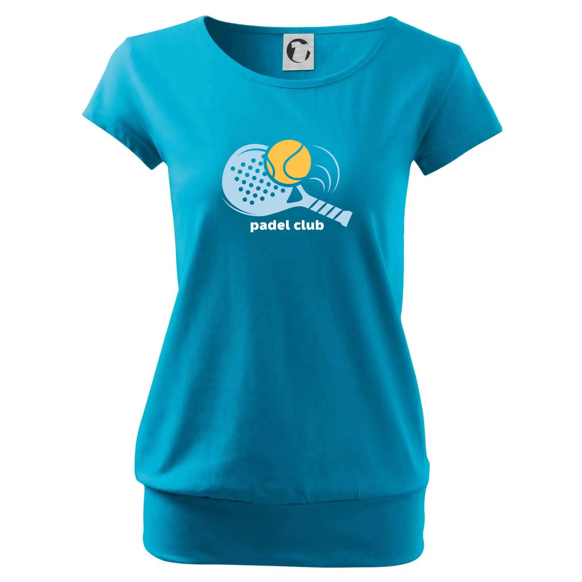 Trendové dámske tričko s veľmi krátkym rukávom, voľnejšieho strihu, v dolnom kraji všité do širokého lemu. Okrúhly priekrčník s úzkym lemom zo zhodného materiálu.
