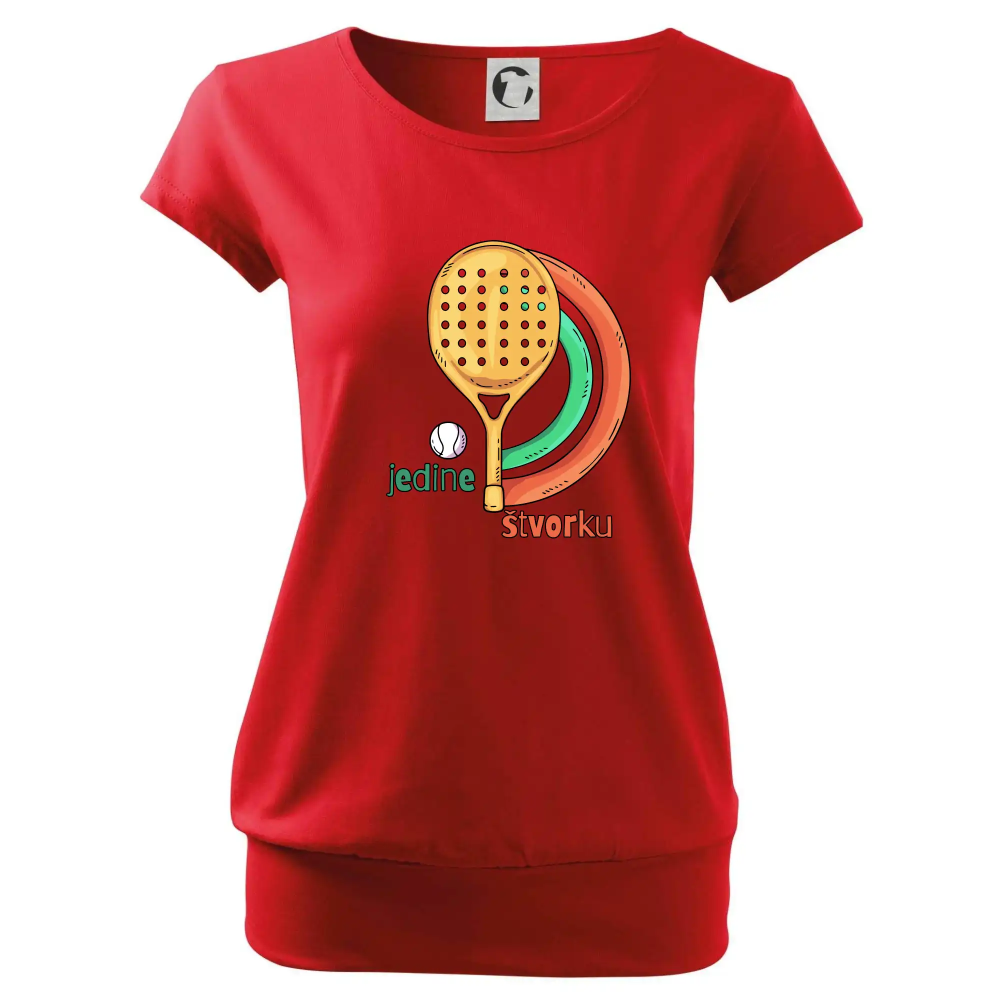 Trendové dámske tričko s veľmi krátkym rukávom, voľnejšieho strihu, v dolnom kraji všité do širokého lemu. Okrúhly priekrčník s úzkym lemom zo zhodného materiálu.