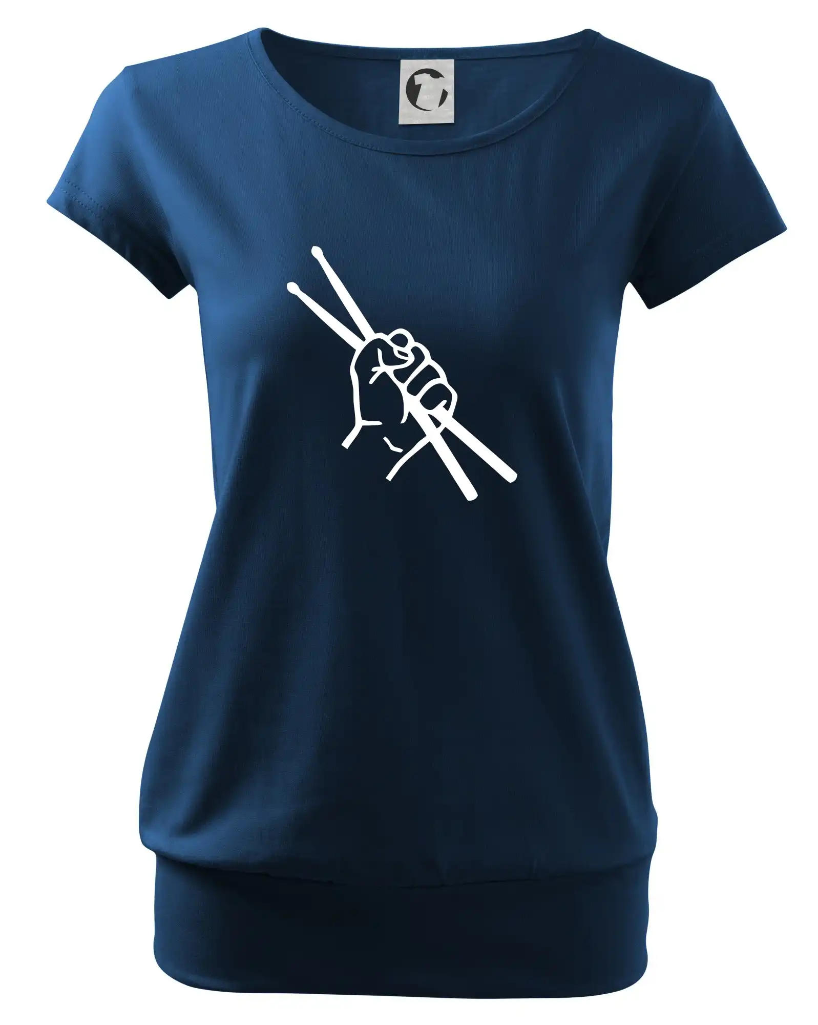 Trendové dámske tričko s veľmi krátkym rukávom, voľnejšieho strihu, v dolnom kraji všité do širokého lemu. Okrúhly priekrčník s úzkym lemom zo zhodného materiálu.