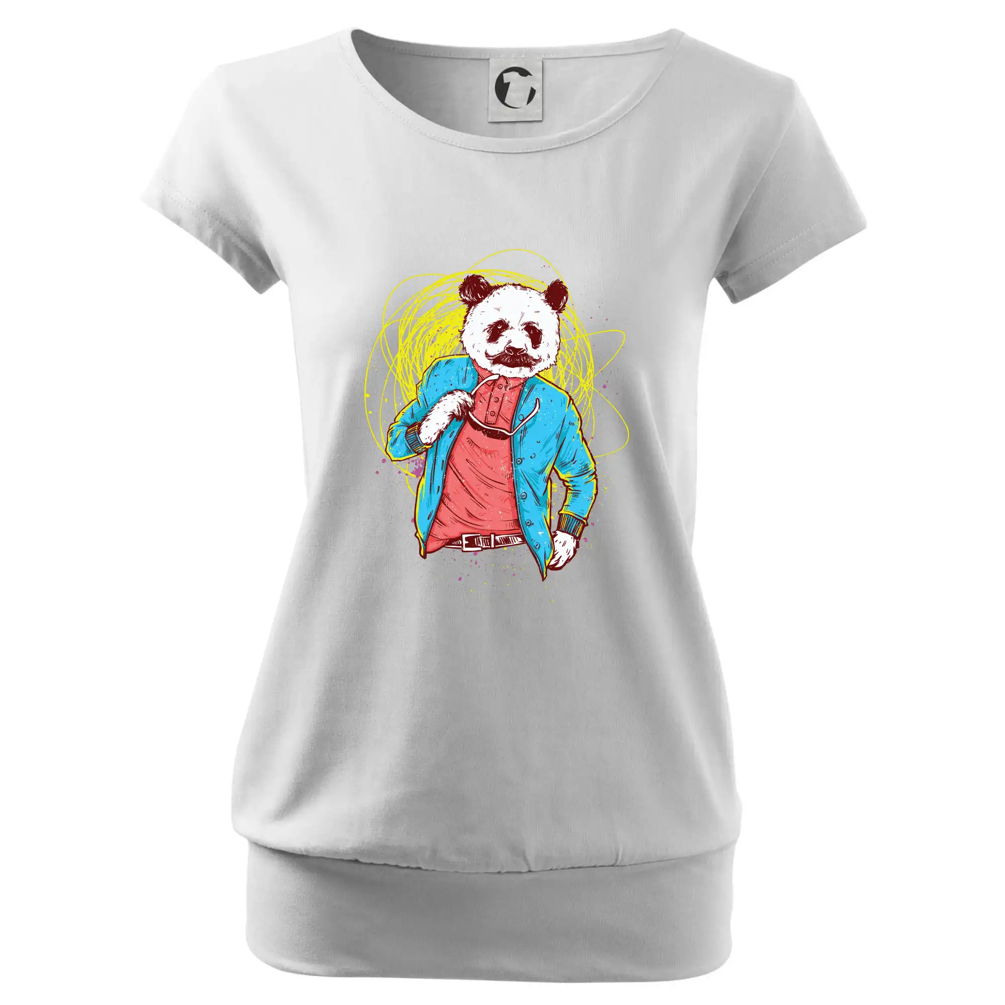 Trendové dámske tričko s veľmi krátkym rukávom, voľnejšieho strihu, v dolnom kraji všité do širokého lemu. Okrúhly priekrčník s úzkym lemom zo zhodného materiálu.