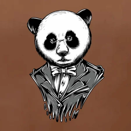 Tričko pre gentlemana, na ktorom je panda v obleku. Nahoď oblek a buď ako panda! Pokiaľ zviera v tebe neskrotí ani oblek, potom je toto tričko, na ktorom je pandia hlava, práve pre Teba!