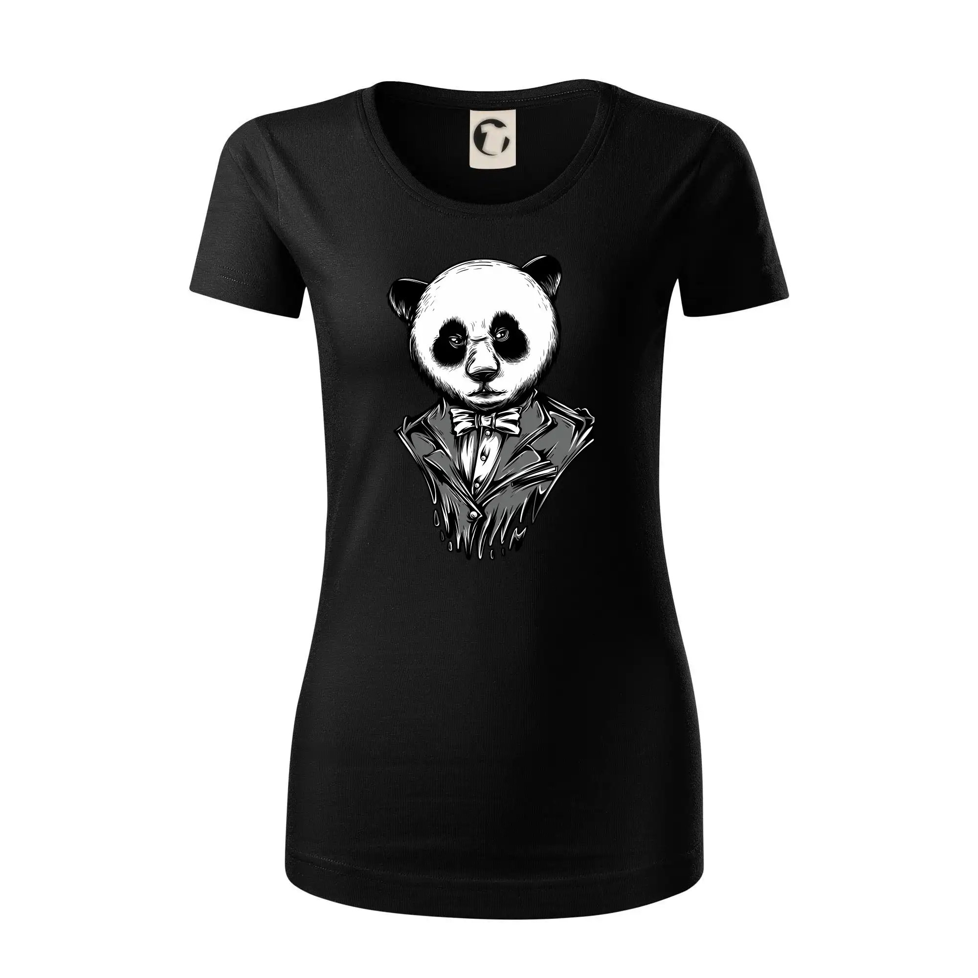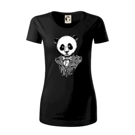 Tričko pre gentlemana, na ktorom je panda v obleku. Nahoď oblek a buď ako panda! Pokiaľ zviera v tebe neskrotí ani oblek, potom je toto tričko, na ktorom je pandia hlava, práve pre Teba!