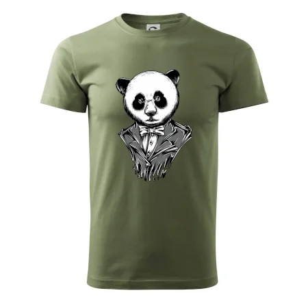 Tričko pre gentlemana, na ktorom je panda v obleku. Nahoď oblek a buď ako panda! Pokiaľ zviera v tebe neskrotí ani oblek, potom je toto tričko, na ktorom je pandia hlava, práve pre Teba!