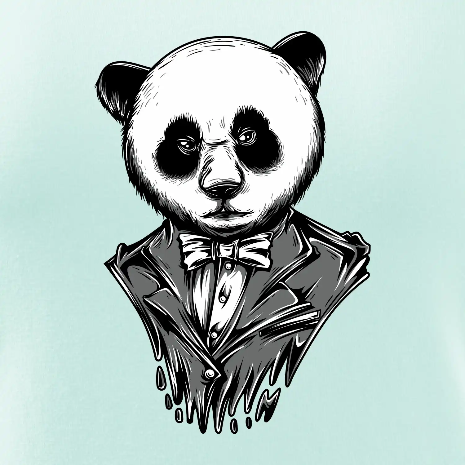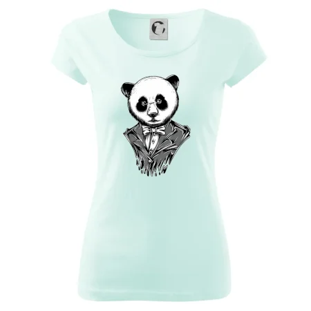 Tričko pre gentlemana, na ktorom je panda v obleku. Nahoď oblek a buď ako panda! Pokiaľ zviera v tebe neskrotí ani oblek, potom je toto tričko, na ktorom je pandia hlava, práve pre Teba!