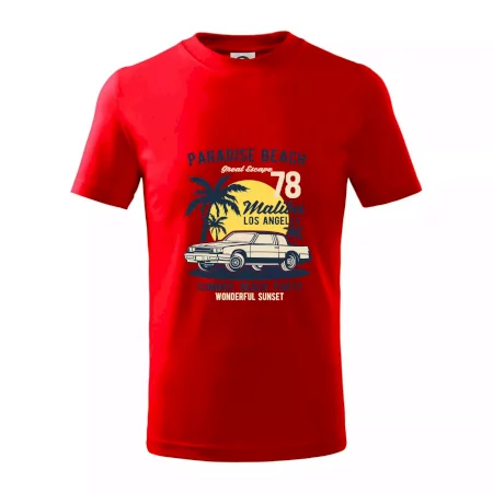 Detské tričko strednej gramáže s bočnými švami. Úzky priekrčník s prídavkom 5% elastanu. Vnútorná časť zadného priekrčníka začistená tkanou páskou. Spevnený ramenný šev.