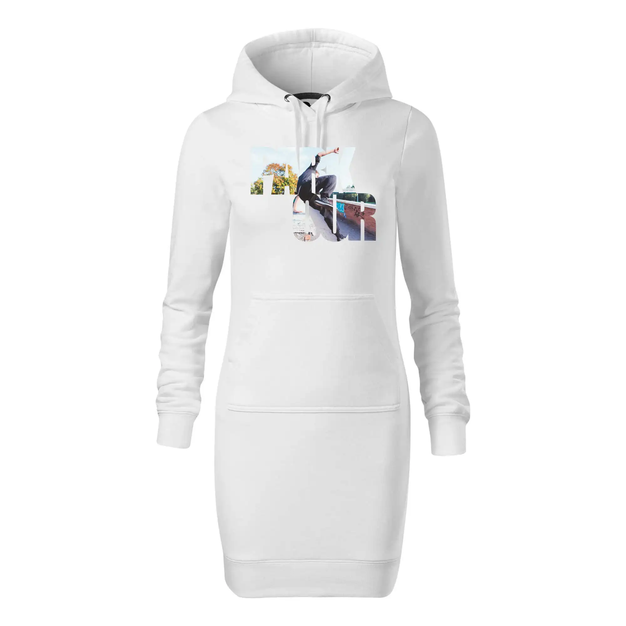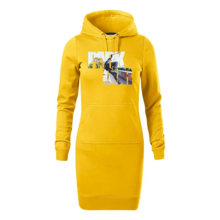 Dámske mikinové šaty MALFINI Snap 419 sú ideálnou voľbou pre ženy, ktoré hľadajú pohodlný a štýlový kúsok na voľný čas alebo každodenné nosenie. Ľahko vypasovaný strih s bočnými švami podčiarkuje ženskú siluetu, zatiaľ čo kapucňa s podšívkou a sťahovacou šnúrkou dodáva ležérny vzhľad. Šaty majú dĺžku nad kolená a sú vybavené našitým vreckom v štýle „klokanky“. Materiál je mäkký a príjemný na dotyk grâce à smesi bavlny a polyesteru s nepočesanou vnútornou stranou.