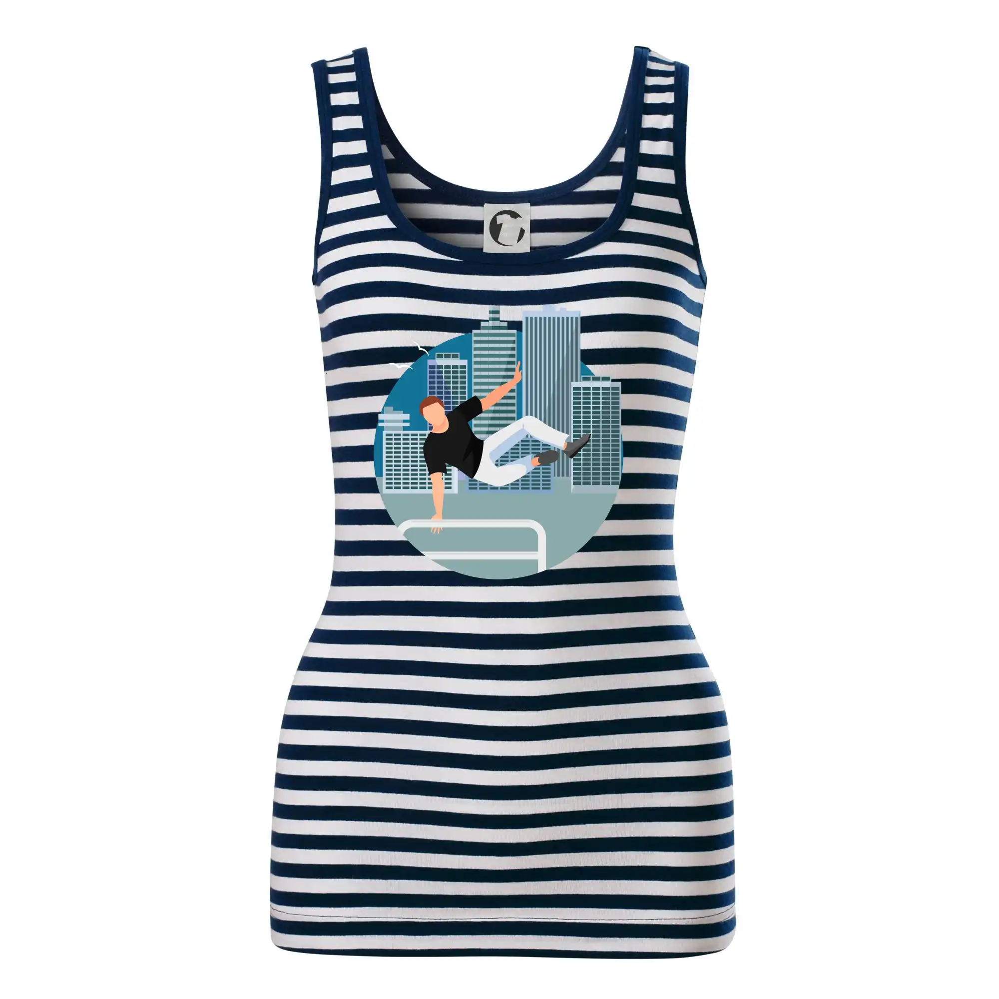 Dámske tielko MALFINI Sailor Top 806 prináša ikonický námornícky vzhľad s bielo-modrými pruhmi, ideálne na letné dni, výlety alebo ležérne outfity.