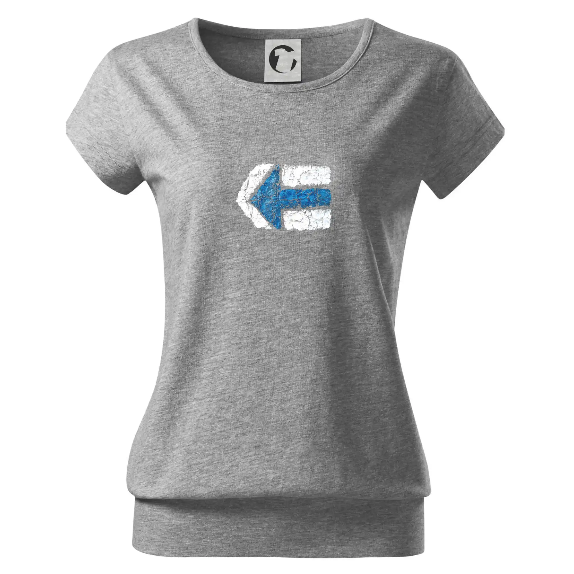 Trendové dámske tričko s veľmi krátkym rukávom, voľnejšieho strihu, v dolnom kraji všité do širokého lemu. Okrúhly priekrčník s úzkym lemom zo zhodného materiálu.