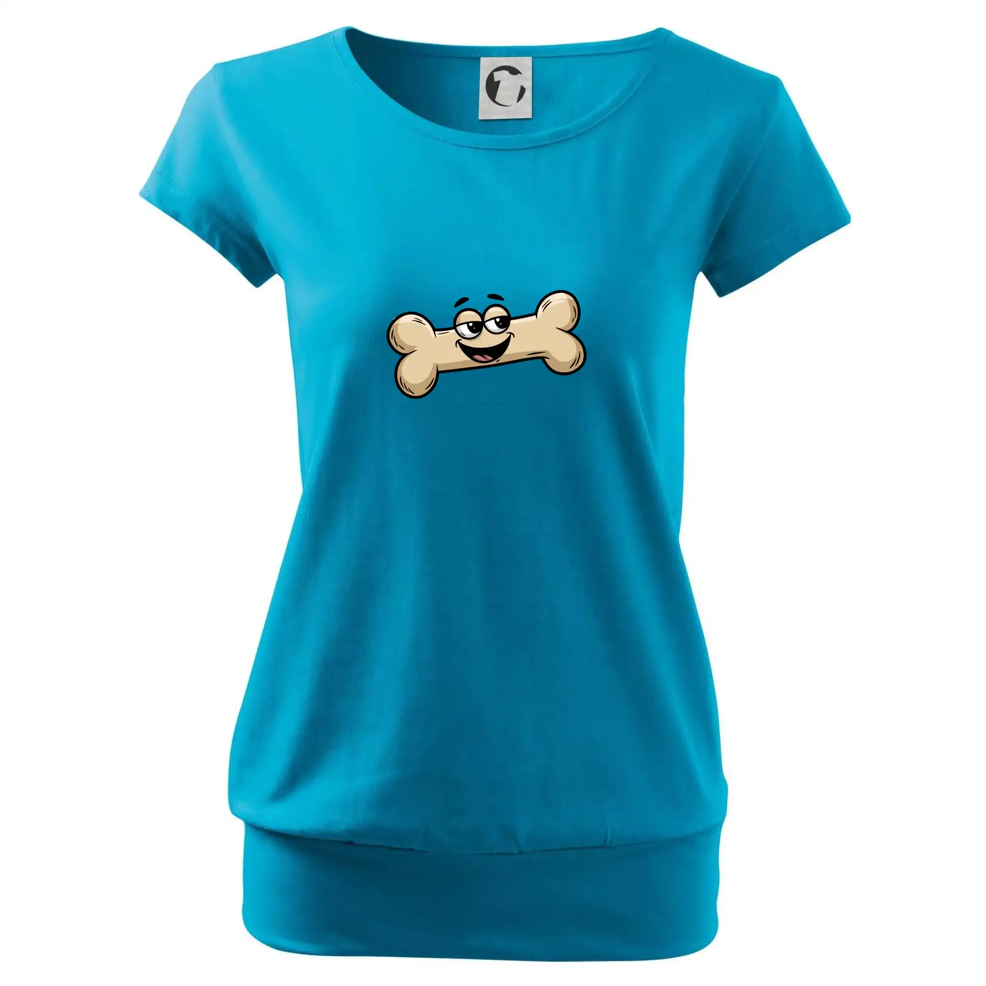 Trendové dámske tričko s veľmi krátkym rukávom, voľnejšieho strihu, v dolnom kraji všité do širokého lemu. Okrúhly priekrčník s úzkym lemom zo zhodného materiálu.