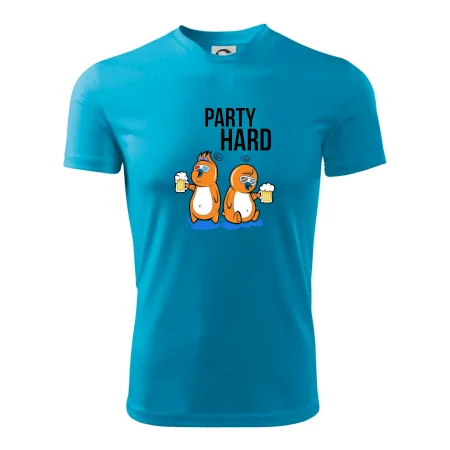 Tričko pre pivára, na ktorom sú dva vtáky s pivom a nápis "party hard" poteší každého pivára. Pivárske tričko je vhodný na každú párty. Pivné tričko je skvelý darček pre pivára.