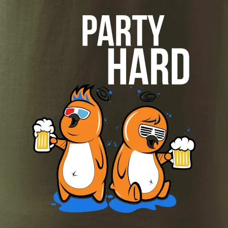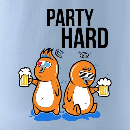 Tričko pre pivára, na ktorom sú dva vtáky s pivom a nápis "party hard" poteší každého pivára. Pivárske tričko je vhodný na každú párty. Pivné tričko je skvelý darček pre pivára.