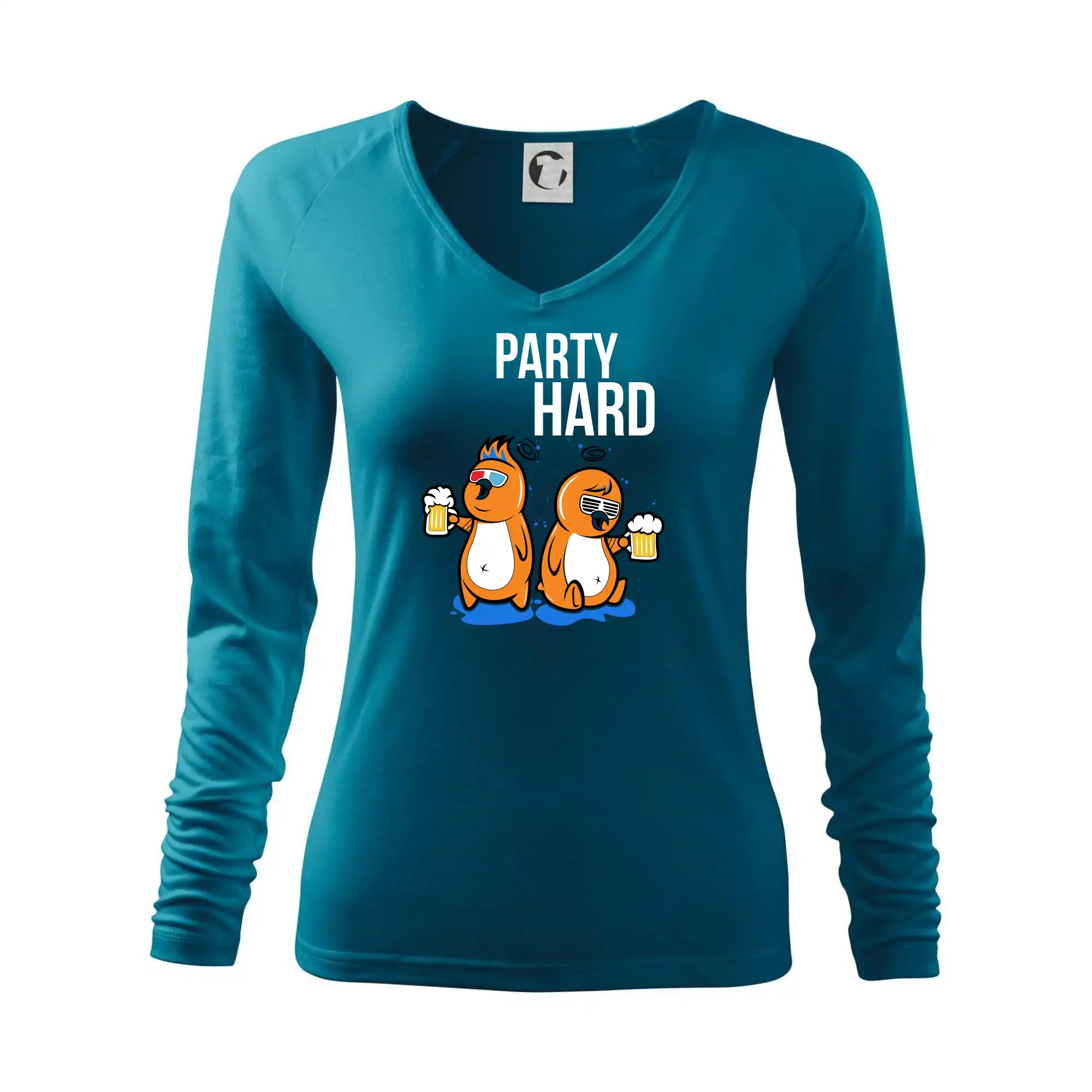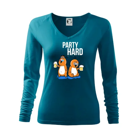 Tričko pre pivára, na ktorom sú dva vtáky s pivom a nápis "party hard" poteší každého pivára. Pivárske tričko je vhodný na každú párty. Pivné tričko je skvelý darček pre pivára.