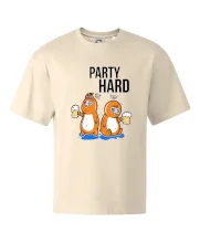 Tričko pre pivára, na ktorom sú dva vtáky s pivom a nápis "party hard" poteší každého pivára. Pivárske tričko je vhodný na každú párty. Pivné tričko je skvelý darček pre pivára.