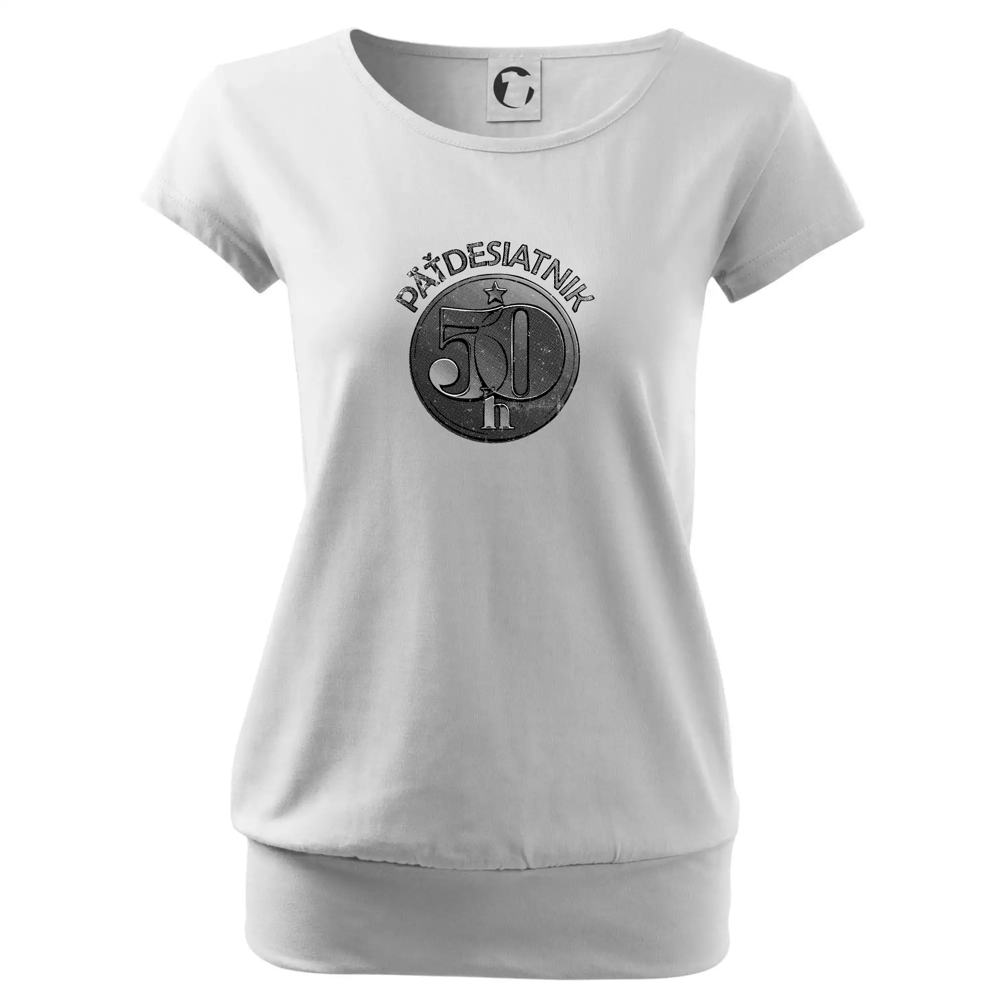 Trendové dámske tričko s veľmi krátkym rukávom, voľnejšieho strihu, v dolnom kraji všité do širokého lemu. Okrúhly priekrčník s úzkym lemom zo zhodného materiálu.