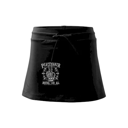 Dámska kraťasová sukňa MALFINI Two in One 604 je perfektnou kombináciou sukne a šortiek, ideálna na šport, voľný čas alebo ležérne nosenie. Vďaka prídavku elastanu si sukňa zachováva tvar a ponúka pohodlie pri pohybe. Krátky strih do tvaru „A“ a široký elastický pás so sťahovacou šnúrkou zabezpečujú voľnosť a prispôsobenie.