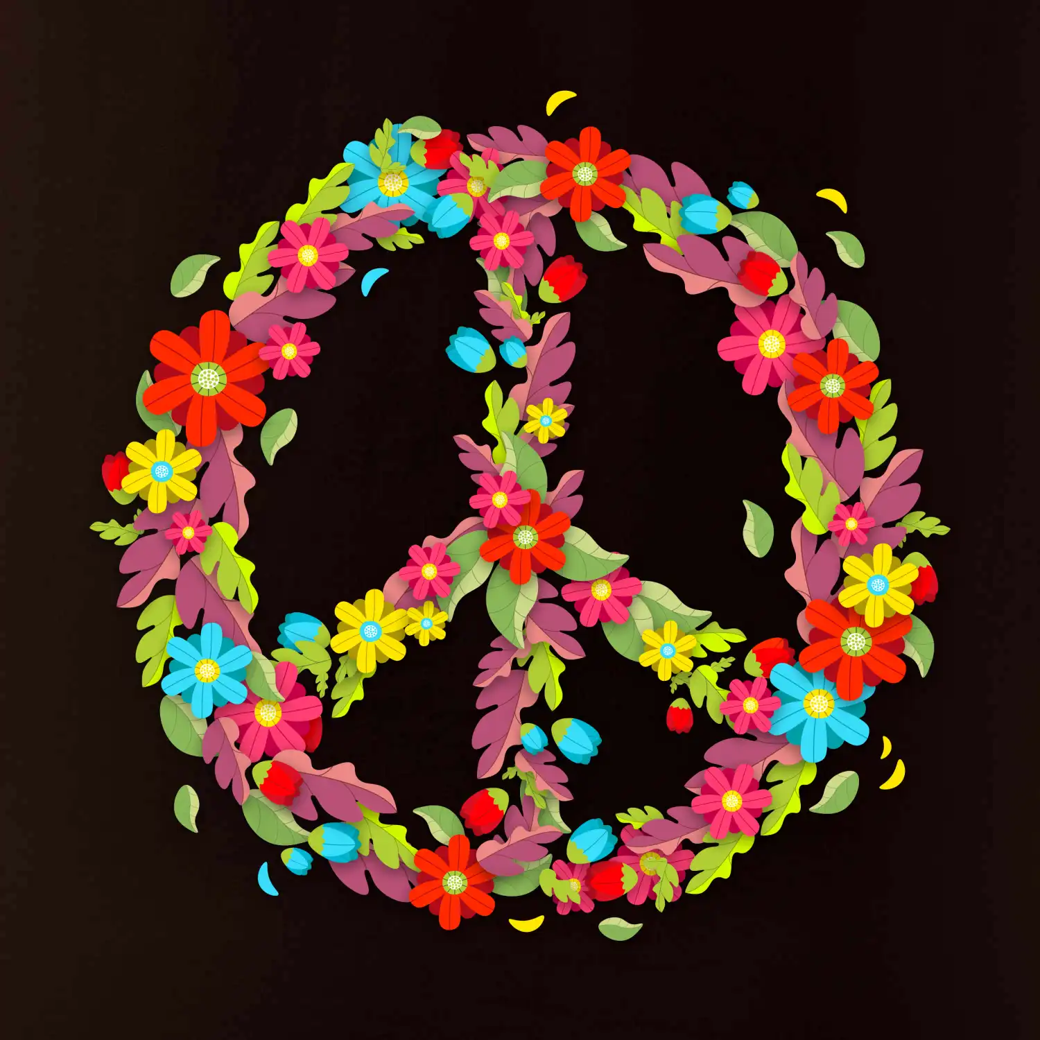 Peace symbol červené kvety