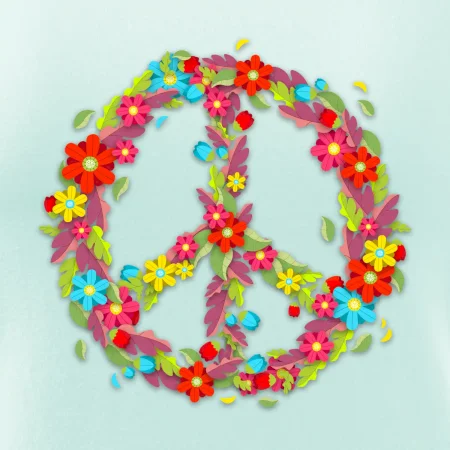 Peace symbol červené kvety