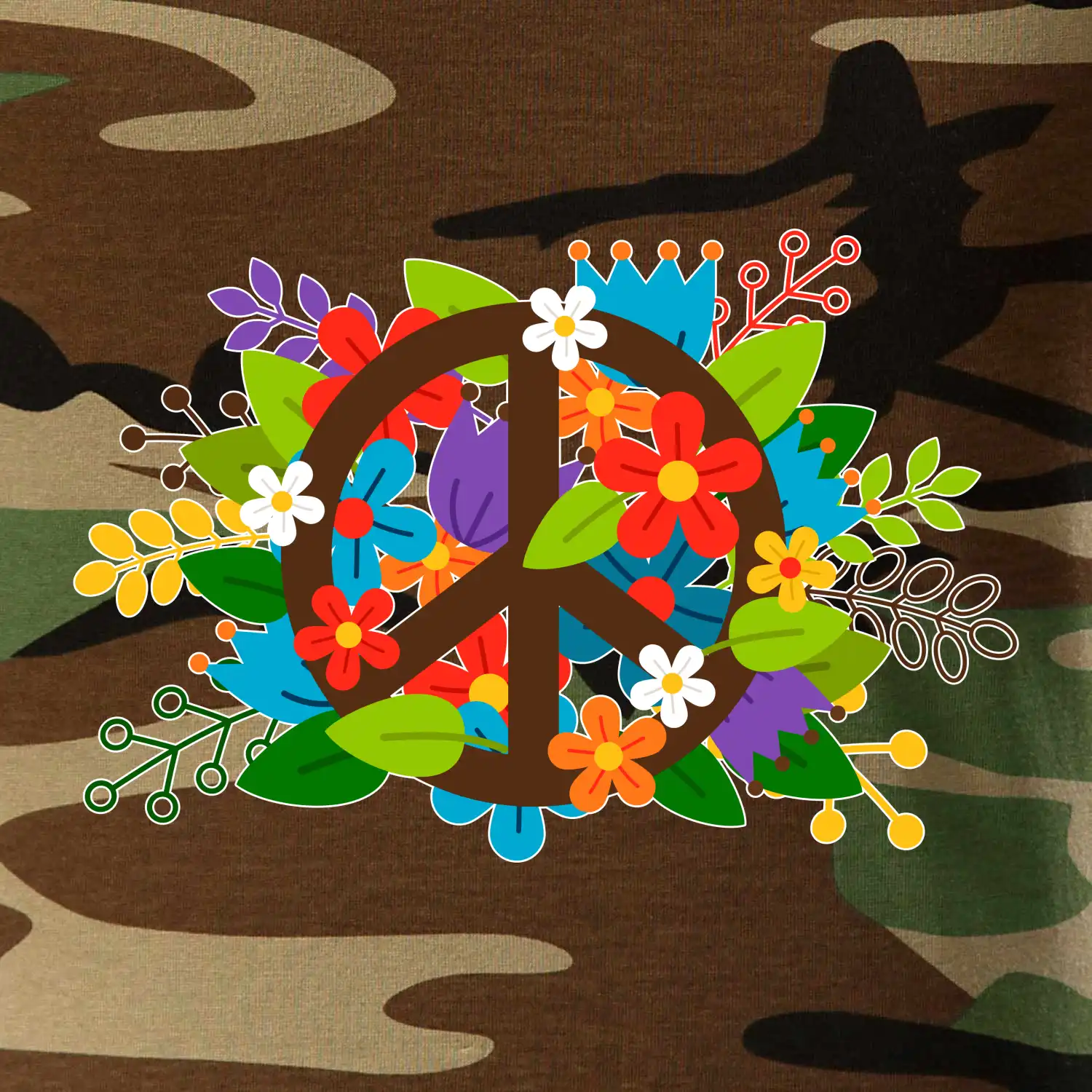 Peace symbol prerastený kvetinami