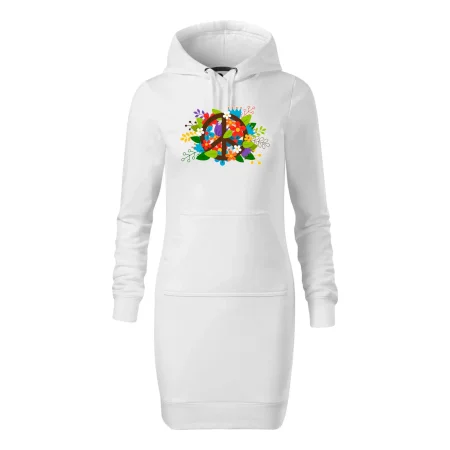 Dámske mikinové šaty MALFINI Snap 419 sú ideálnou voľbou pre ženy, ktoré hľadajú pohodlný a štýlový kúsok na voľný čas alebo každodenné nosenie. Ľahko vypasovaný strih s bočnými švami podčiarkuje ženskú siluetu, zatiaľ čo kapucňa s podšívkou a sťahovacou šnúrkou dodáva ležérny vzhľad. Šaty majú dĺžku nad kolená a sú vybavené našitým vreckom v štýle „klokanky“. Materiál je mäkký a príjemný na dotyk grâce à smesi bavlny a polyesteru s nepočesanou vnútornou stranou.