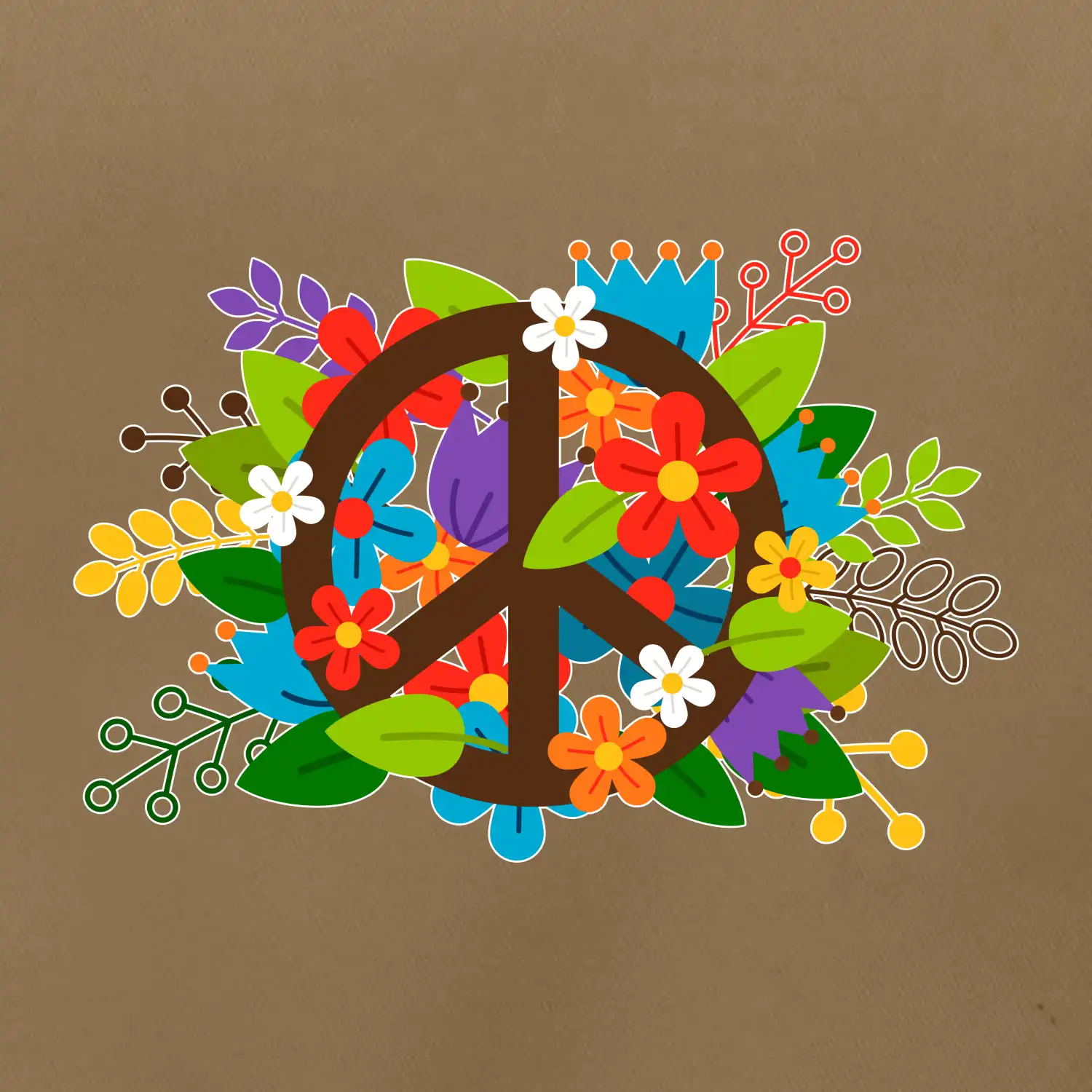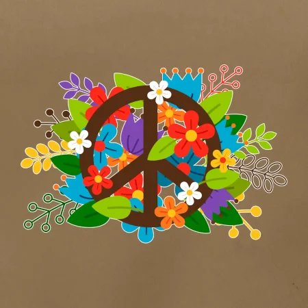 Peace symbol prerastený kvetinami