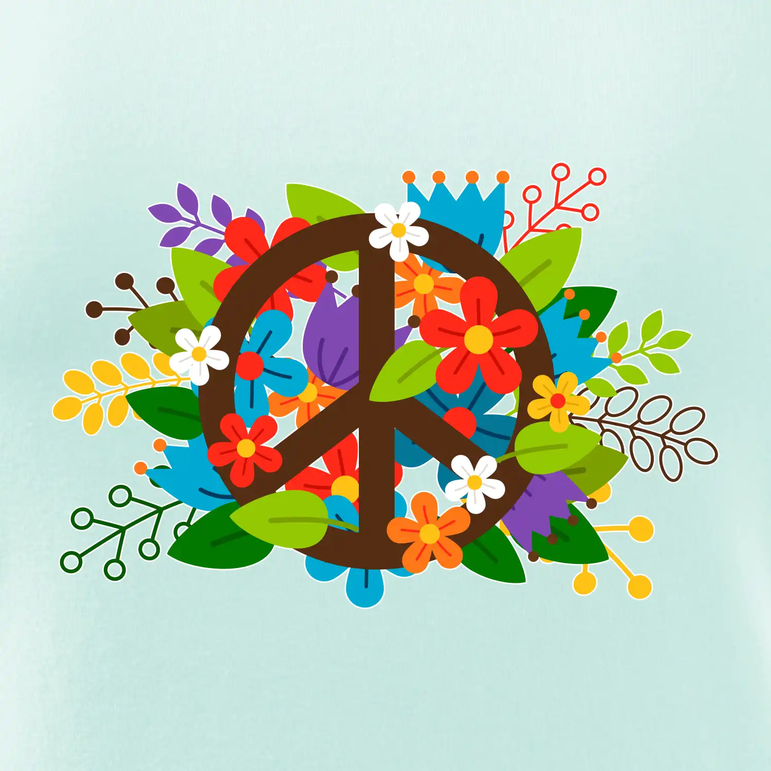 Peace symbol prerastený kvetinami