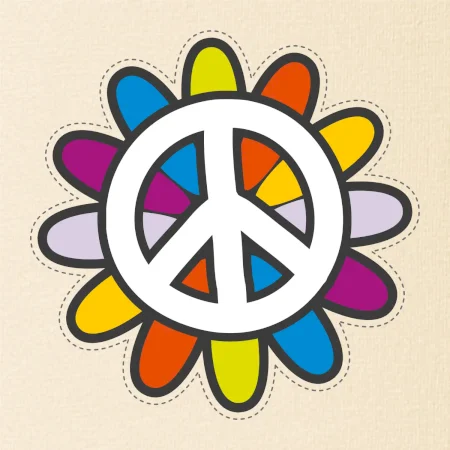 Peace symbol s kreslenou kvetinou