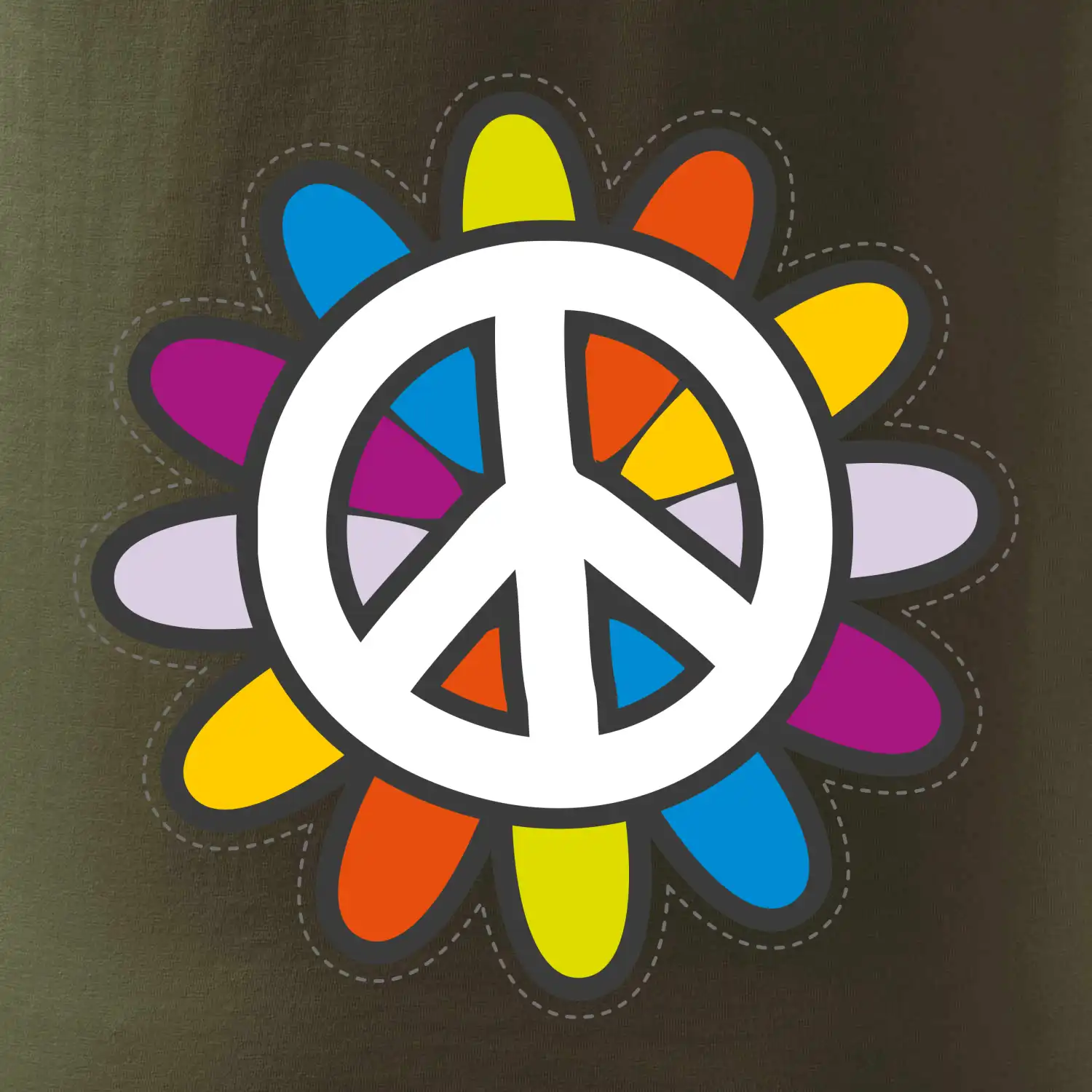 Peace symbol s kreslenou kvetinou