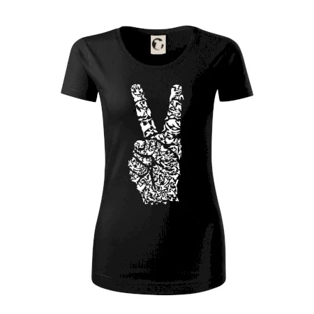 Všeobecně známý symbol pro mír, celosvětově známý symbol s dvěma zdviženými prsty.