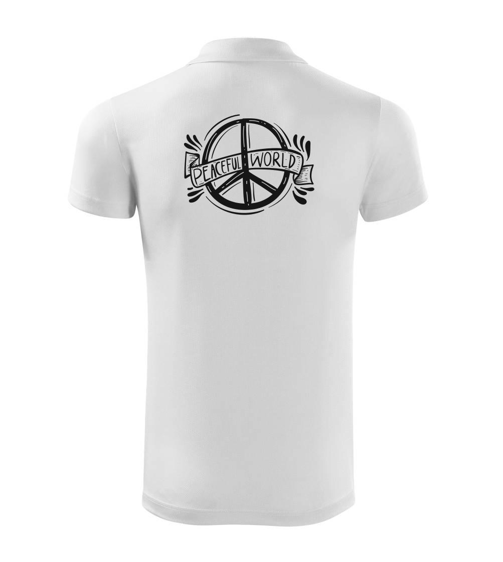 Hľadáš originálne tričká na party či len tak na bežné nosenie? Tak to si tu správne! Poteš seba alebo kamaráta či súrodenca s originálnym tričkom od Myshirt. Tričko s nápisom peaceful world a peace logom je to, čo hľadáš.