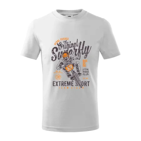 Detské tričko strednej gramáže s bočnými švami. Úzky priekrčník s prídavkom 5% elastanu. Vnútorná časť zadného priekrčníka začistená tkanou páskou. Spevnený ramenný šev.