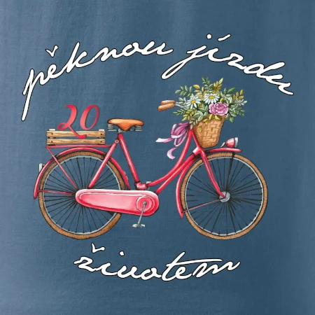 Narodeninové tričko pre priateľku, sestru, slečnu, ktorá oslavuje 20 rokov, s motom "peknú jazdu životom". Štýlový bicykel ako darček na 20.narodeniny pre ženu. Tričko pre priateľku, sestru, slečnu, ktorá oslavuje jubileum 20 rokov.