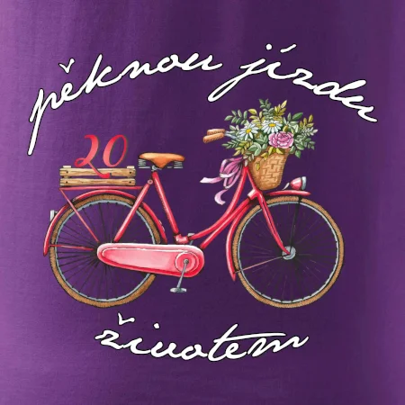 Narodeninové tričko pre priateľku, sestru, slečnu, ktorá oslavuje 20 rokov, s motom "peknú jazdu životom". Štýlový bicykel ako darček na 20.narodeniny pre ženu. Tričko pre priateľku, sestru, slečnu, ktorá oslavuje jubileum 20 rokov.