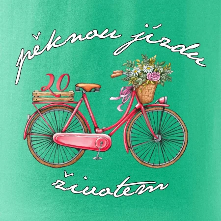 Narodeninové tričko pre priateľku, sestru, slečnu, ktorá oslavuje 20 rokov, s motom "peknú jazdu životom". Štýlový bicykel ako darček na 20.narodeniny pre ženu. Tričko pre priateľku, sestru, slečnu, ktorá oslavuje jubileum 20 rokov.