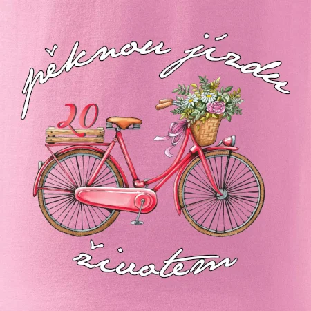 Narodeninové tričko pre priateľku, sestru, slečnu, ktorá oslavuje 20 rokov, s motom "peknú jazdu životom". Štýlový bicykel ako darček na 20.narodeniny pre ženu. Tričko pre priateľku, sestru, slečnu, ktorá oslavuje jubileum 20 rokov.