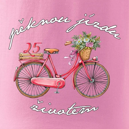 Narodeninové tričko pre priateľku, sestru, slečnu, ktorá oslavuje 25 rokov, s motom "peknú jazdu životom". Štýlový bicykel ako darček na 25.narodeniny pre ženu. Tričko pre priateľku, sestru, slečnu, ktorá oslavuje jubileum 25 rokov.