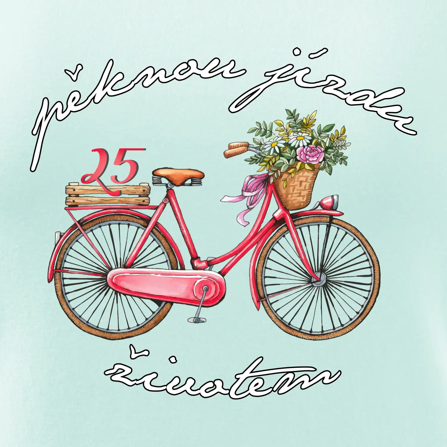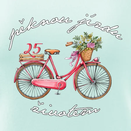 Narodeninové tričko pre priateľku, sestru, slečnu, ktorá oslavuje 25 rokov, s motom "peknú jazdu životom". Štýlový bicykel ako darček na 25.narodeniny pre ženu. Tričko pre priateľku, sestru, slečnu, ktorá oslavuje jubileum 25 rokov.