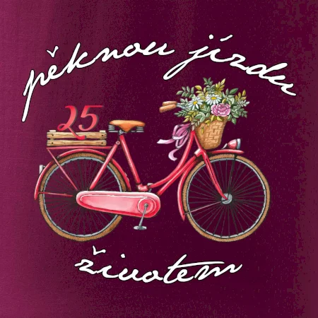 Narodeninové tričko pre priateľku, sestru, slečnu, ktorá oslavuje 25 rokov, s motom "peknú jazdu životom". Štýlový bicykel ako darček na 25.narodeniny pre ženu. Tričko pre priateľku, sestru, slečnu, ktorá oslavuje jubileum 25 rokov.