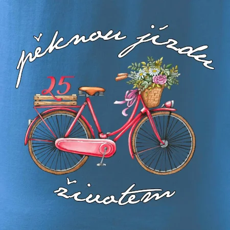 Narodeninové tričko pre priateľku, sestru, slečnu, ktorá oslavuje 25 rokov, s motom "peknú jazdu životom". Štýlový bicykel ako darček na 25.narodeniny pre ženu. Tričko pre priateľku, sestru, slečnu, ktorá oslavuje jubileum 25 rokov.