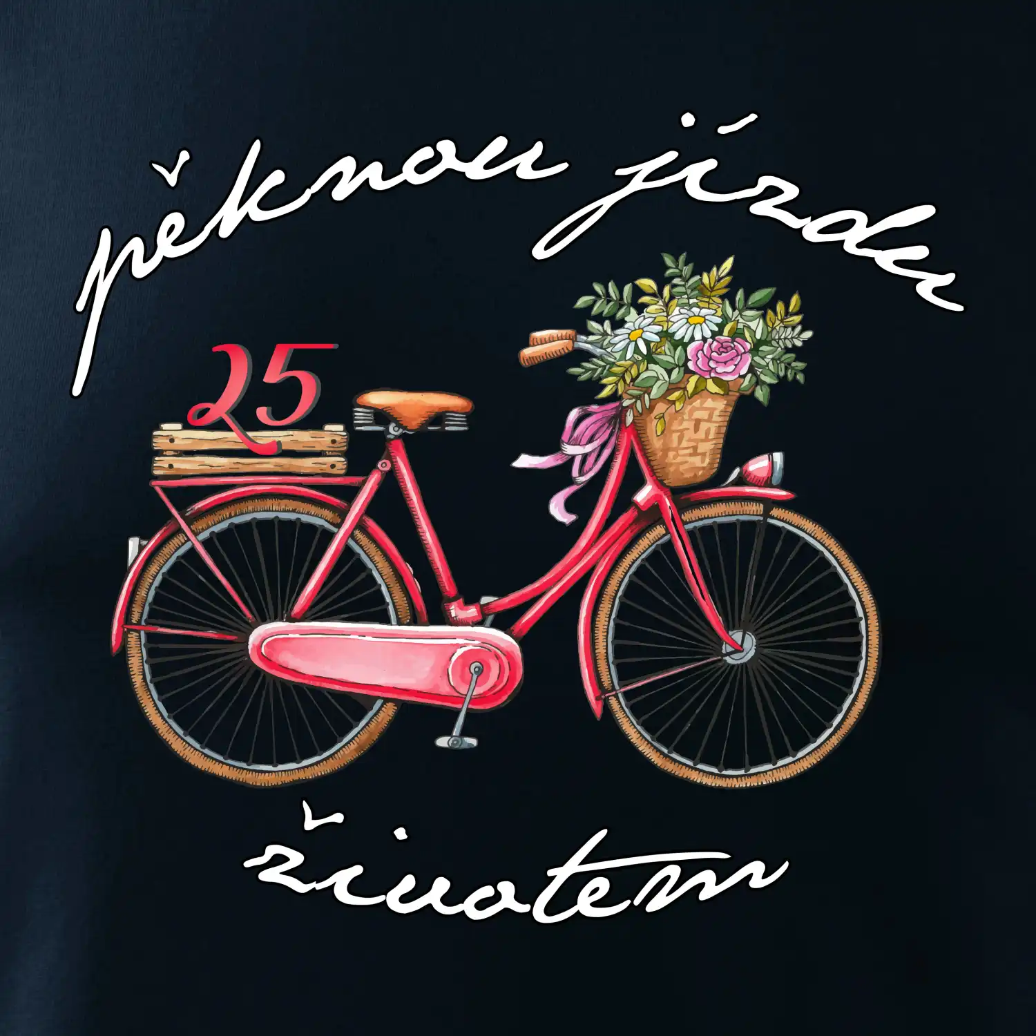 Narodeninové tričko pre priateľku, sestru, slečnu, ktorá oslavuje 25 rokov, s motom "peknú jazdu životom". Štýlový bicykel ako darček na 25.narodeniny pre ženu. Tričko pre priateľku, sestru, slečnu, ktorá oslavuje jubileum 25 rokov.