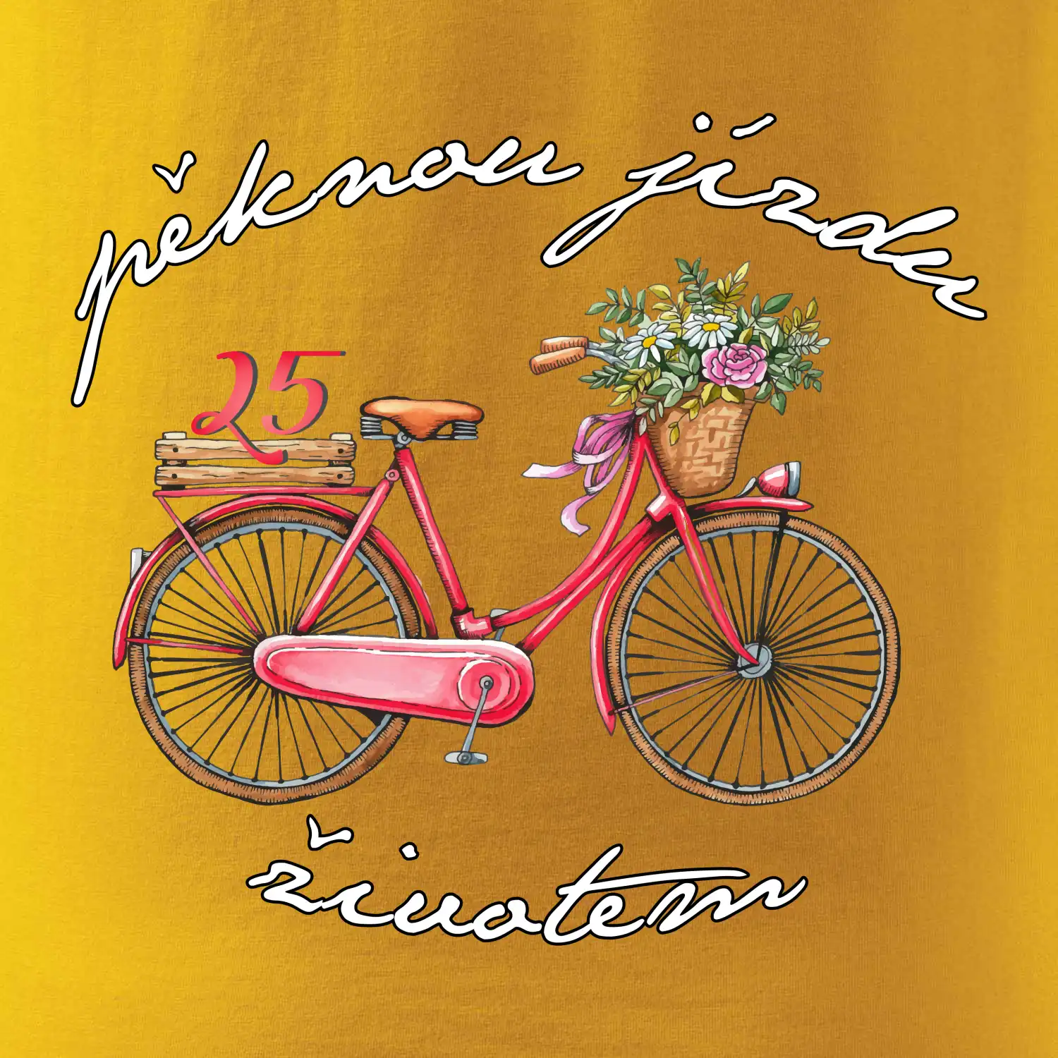 Narodeninové tričko pre priateľku, sestru, slečnu, ktorá oslavuje 25 rokov, s motom "peknú jazdu životom". Štýlový bicykel ako darček na 25.narodeniny pre ženu. Tričko pre priateľku, sestru, slečnu, ktorá oslavuje jubileum 25 rokov.