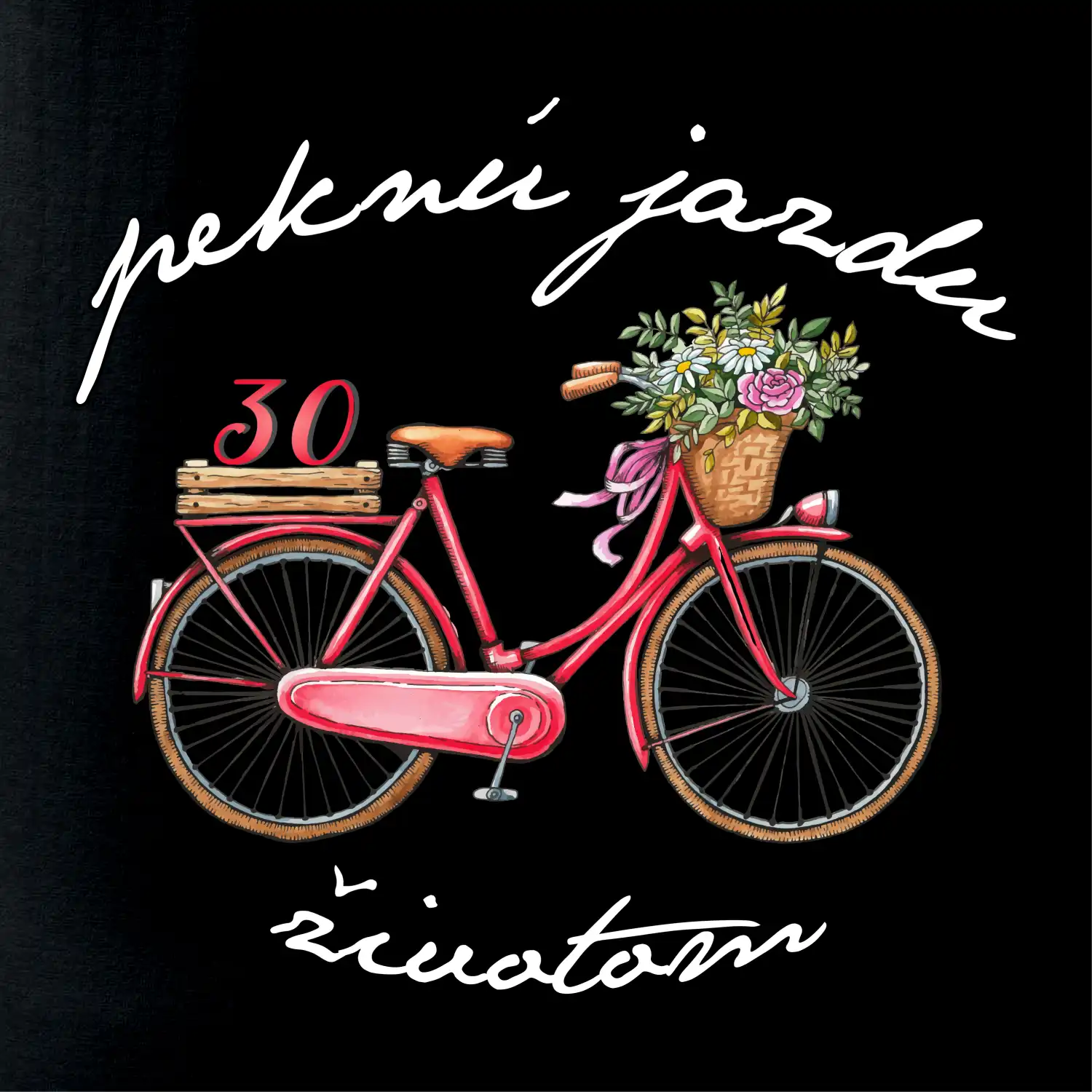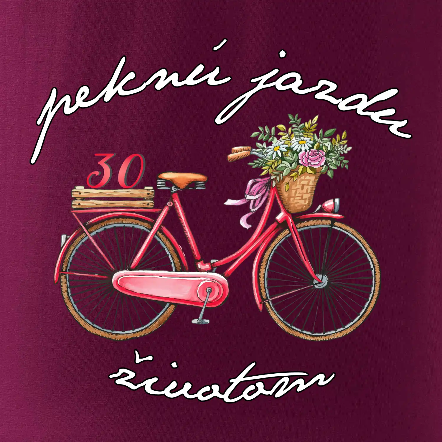 Narodeninové tričko pre mamičku alebo priateľku, ktorá oslavuje 30 rokov, s motom "peknú jazdu životom". Štýlový bicykel ako darček na 30.narodeniny pre ženu. Tričko pre mamičku alebo priateľku, ktorá oslavuje jubileum 30 rokov.