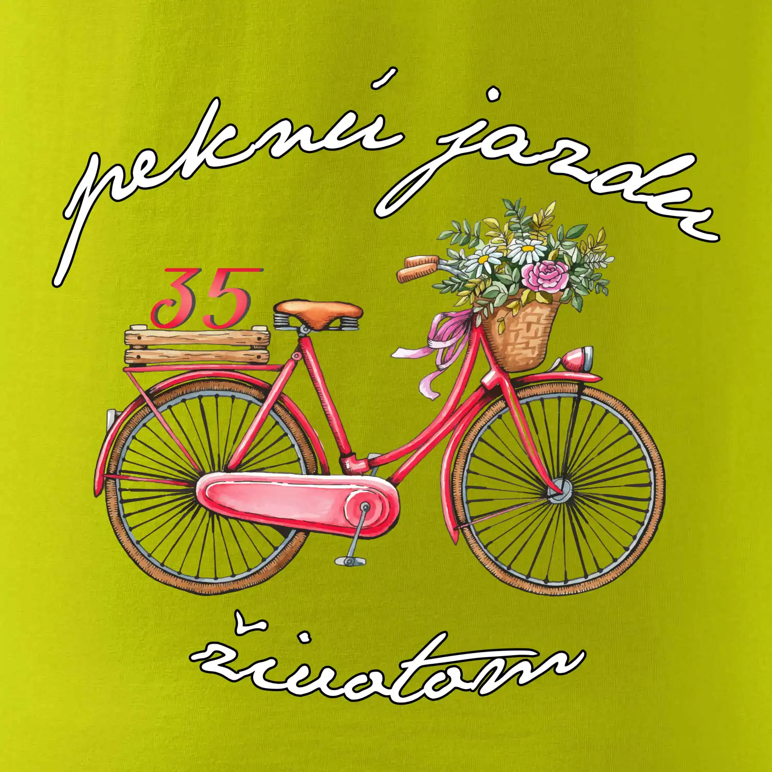 Narodeninové tričko pre mamičku alebo priateľku, ktorá oslavuje 35 rokov, s motom "peknú jazdu životom". Štýlový bicykel ako darček na 35.narodeniny pre ženu. Tričko pre mamičku alebo priateľku, ktorá oslavuje jubileum 35 rokov.