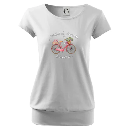 Narodeninové tričko pre mamičku alebo priateľku, ktorá oslavuje 35 rokov, s motom "peknú jazdu životom". Štýlový bicykel ako darček na 35.narodeniny pre ženu. Tričko pre mamičku alebo priateľku, ktorá oslavuje jubileum 35 rokov.