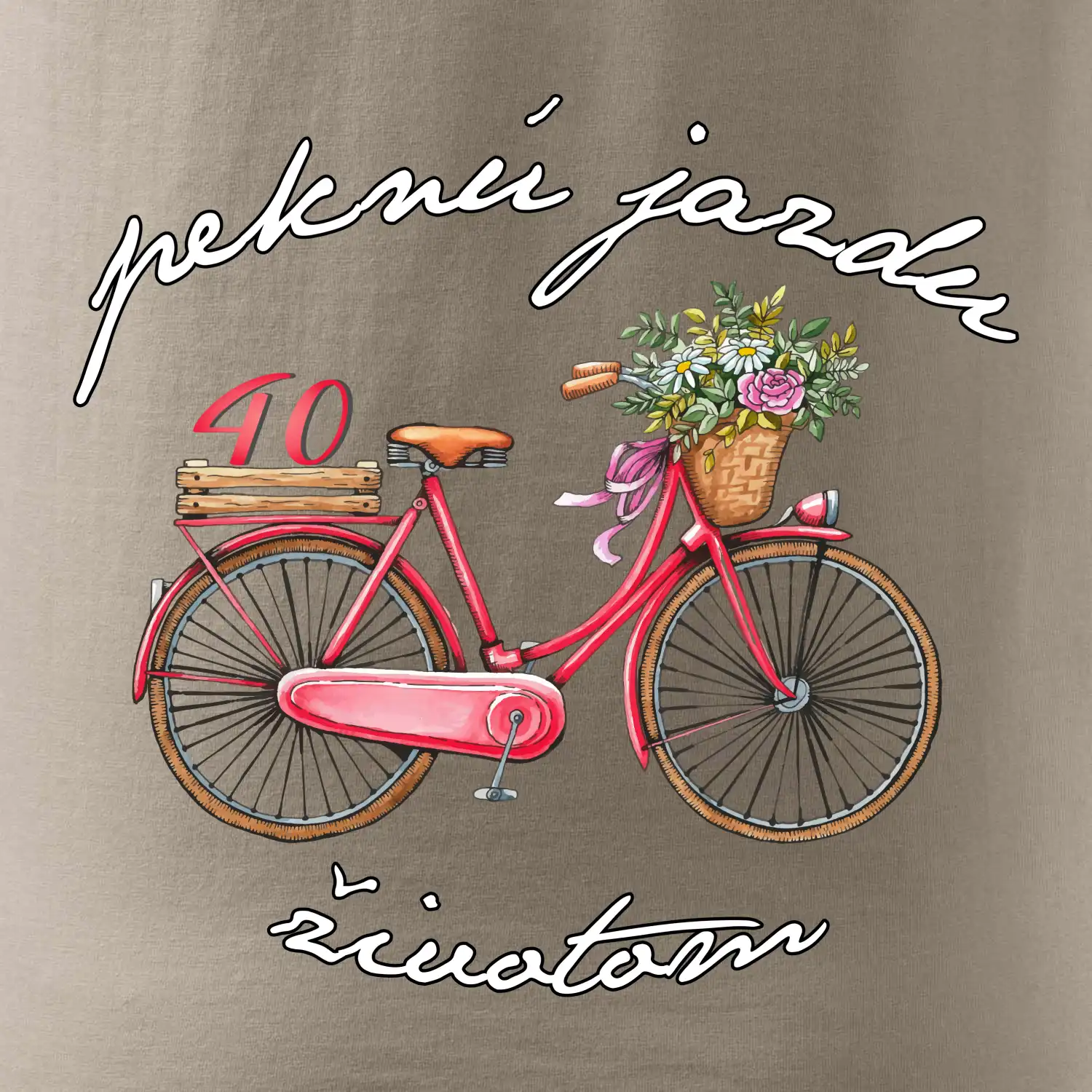Narodeninové tričko pre mamičku alebo inú ženu, ktorá oslavuje 40 rokov, s motom "peknú jazdu životom". Štýlový bicykel ako darček na 40. narodeniny pre ženu. Tričko pre mamičku alebo inú ženu, ktorá oslavuje jubileum 40 rokov.