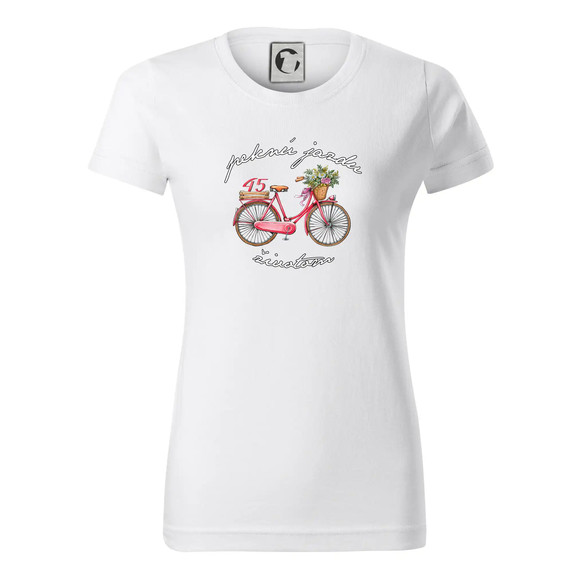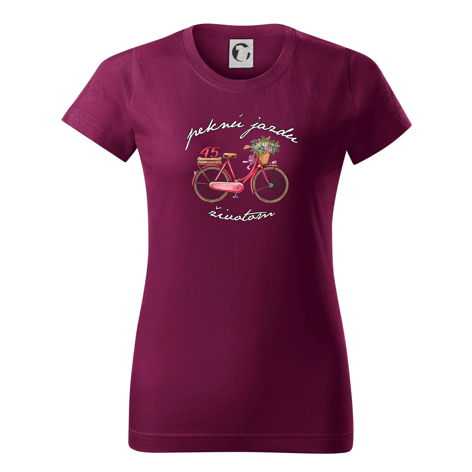 Narodeninové tričko pre babičku alebo mamičku, ktorá oslavuje 45 rokov, s motom "peknú jazdu životom". Štýlový bicykel ako darček na 45. narodeniny pre ženu. Tričko pre babičku alebo mamičku, ktorá oslavuje jubileum 45 rokov.