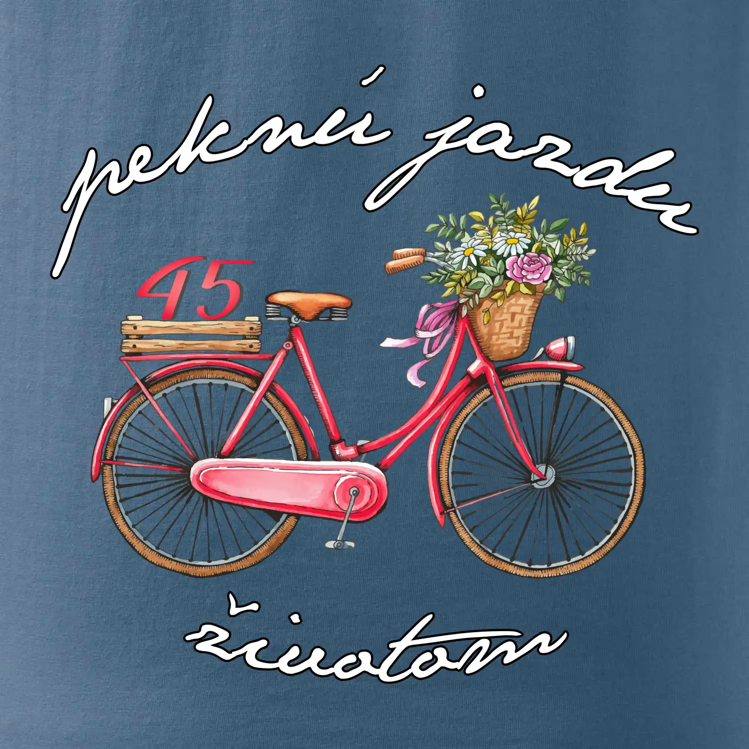 Narodeninové tričko pre babičku alebo mamičku, ktorá oslavuje 45 rokov, s motom "peknú jazdu životom". Štýlový bicykel ako darček na 45. narodeniny pre ženu. Tričko pre babičku alebo mamičku, ktorá oslavuje jubileum 45 rokov.