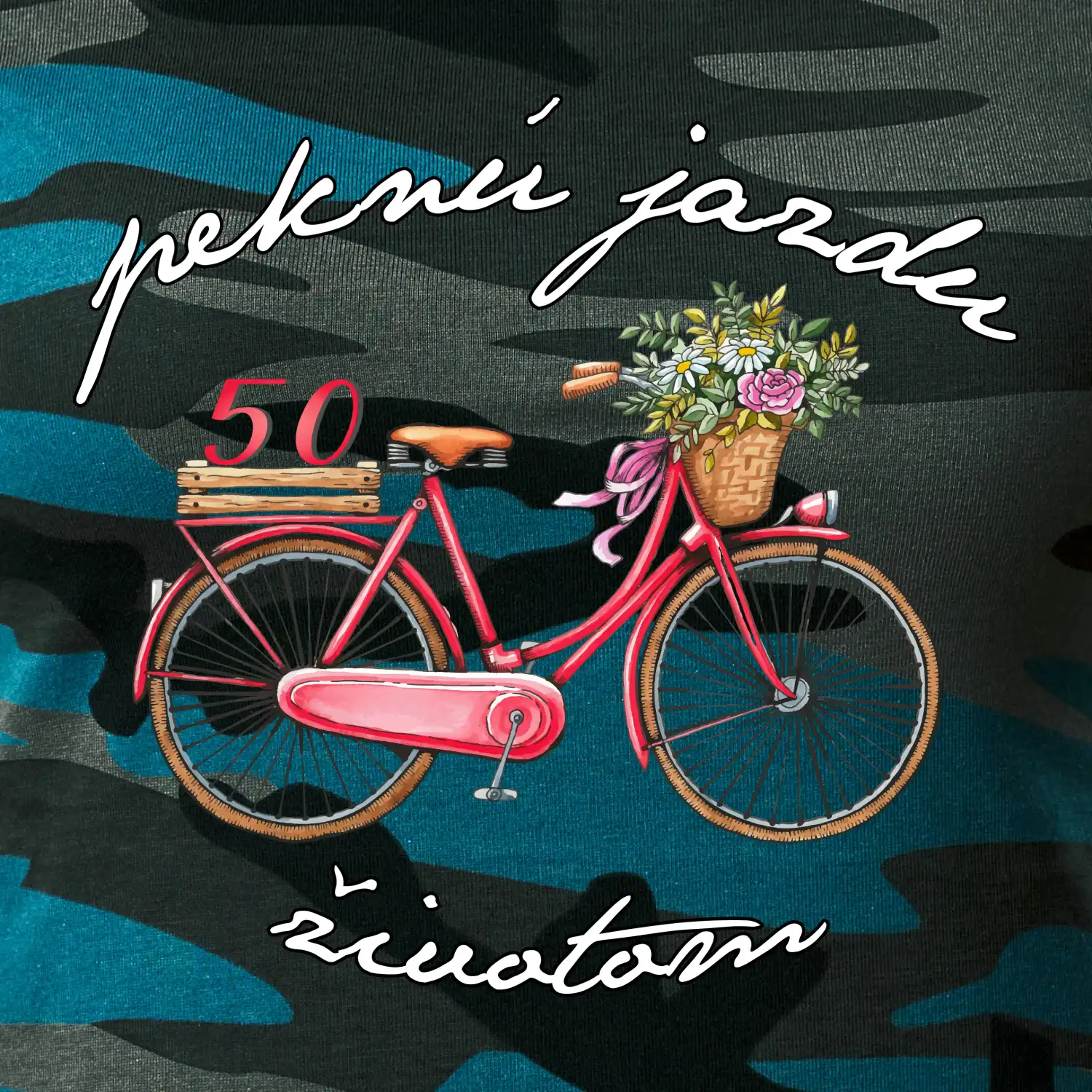 Narodeninové tričko pre babičku alebo mamičku, ktorá oslavuje 50 rokov, s motom "peknú jazdu životom". Štýlový bicykel ako darček na 50. narodeniny pre ženu. Tričko pre babičku alebo mamičku, ktorá oslavuje jubileum 50 rokov.